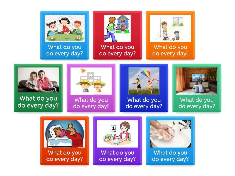 What do you do every day? - I do my homework every day., What do you do every day? - We do the house work every day., What do you do every day? - I go to school every day., What do you do every day? - I go home every day., What do you do every day? - I play with my friends every day., What do you do every day? - We play video games every day., What do you do every day? - I wash my hands every day., What do you do every day? - I watch Tv every day., What do you do every day? - I go to sleep every day., What do you do every day? - I fly a kite every day.,
