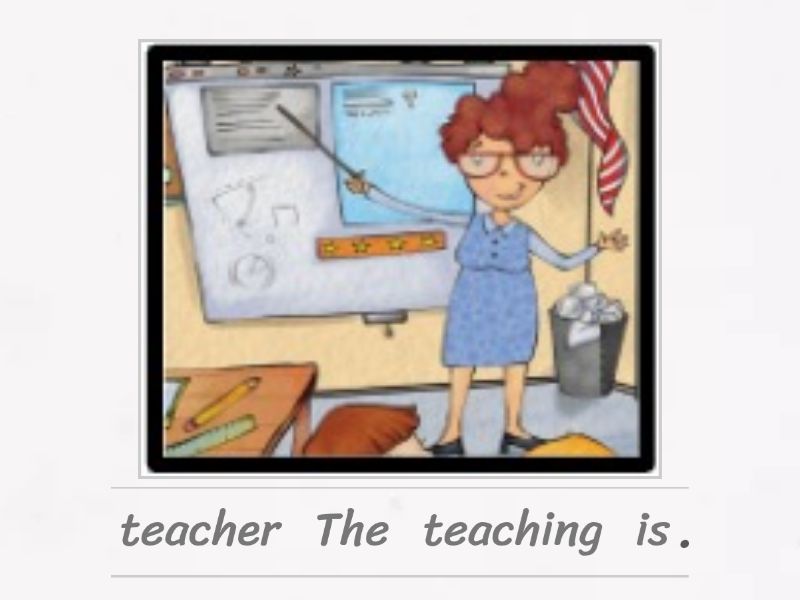 The teacher is teaching. , She is standing at the board. , She is wearing glasses. , She is pointing to the board. , The student is standing at the door. , He is knocking on the door. , He is looking in the window. , The student is working at the table. , He is sitting in a wheel chair. , He is looking at the teacher. , The student is walking with a container. , She is carrying the container. , The student is drawing a line. , She is holding a crayon. , She is drawing with an orange crayon. , She is drawing on paper. , The student is talking to her friend. , She is cutting with scissors. , She is making shapes. , The students are working in the classroom. ,