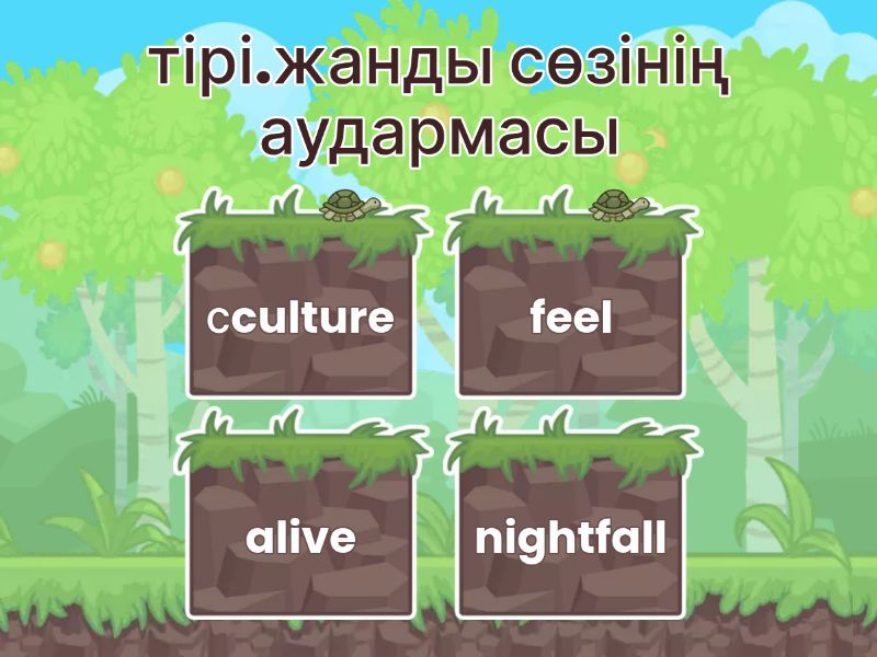 1) тірі.жанды сөзінің аудармасы a) сculture b) feel c) alive d) nightfall 2) тығыз,тығыздалған сөзінің аудармасы? a) dense b) make my way c) nothing compares to d) opportunity 3) бұраңдаған, ирек, иреңдеген сөзінің аудармасы? a) culture b) winding c) nightfall d) dense 4) өз жолымен жүру сөзінің аудармасы? a) alive b) mouth of the river c) the time of my life d) make me way 5) сезіну сөзінің аудармасы? a) dense b) feel c) nightfall d) winding