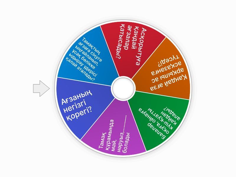 1) Тамақтың ағзаға сіңуге ыңғайланып, ұсақ бөлікке ыдырау үдерісі қалай аталады? a) асқорыту b) тыныс алу 2) Асқорытуға қандай ағзалар қатысады? a) жүйке жүйесі, ми, жүрек, бас, тоқішек b) ауыз қуысы, өңеш, асқазан, ашішек, тоқішек 3) Қандай ағза арқылы ас асқазанға түседі? a) өңеш b) ашішек 4) Балалар оқуға, ойнауға күш-қуатты қайдан алады? a) пайдасыз тамақтан, тәттілерден b) пайдалы тамақтан, дәрумендерден, жеміс-жидектерден 5) Тамақ құрамында май, нәруыз,.............. болады a) оттегі b) көмірсу 6) Ағзаның негізгі қорегі? a) су b) нәруыз