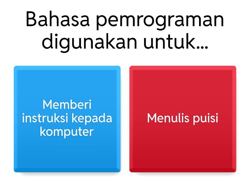 1) Bahasa pemrograman digunakan untuk... a) Memberi instruksi kepada komputer b) Menulis puisi 2) Urutan langkah-langkah logis untuk menyelesaikan masalah disebut... a) Kompiler b) Algoritma 3) Flowchart digunakan untuk... a) Memvisualisasikan algoritma b) Menghitung data 4) Simbol belah ketupat pada flowchart digunakan untuk... a) Keputusan (percabangan) b) Terminator 5) Dalam Python, perintah untuk menampilkan teks adalah... a) print() b) display() 6) Dalam struktur percabangan, kata kunci pada Python yang digunakan adalah... a) while b) if 7) Operator logika AND pada Python ditulis dengan... a) and b) not 8) Untuk mengulangi perintah sebanyak 5 kali digunakan... a) for i in range(5): b) repeat(5) 9) Hasil dari print(2**3) adalah. a) 6 b) 9 10) Komentar dalam Python diawali dengan... a) # b) \\