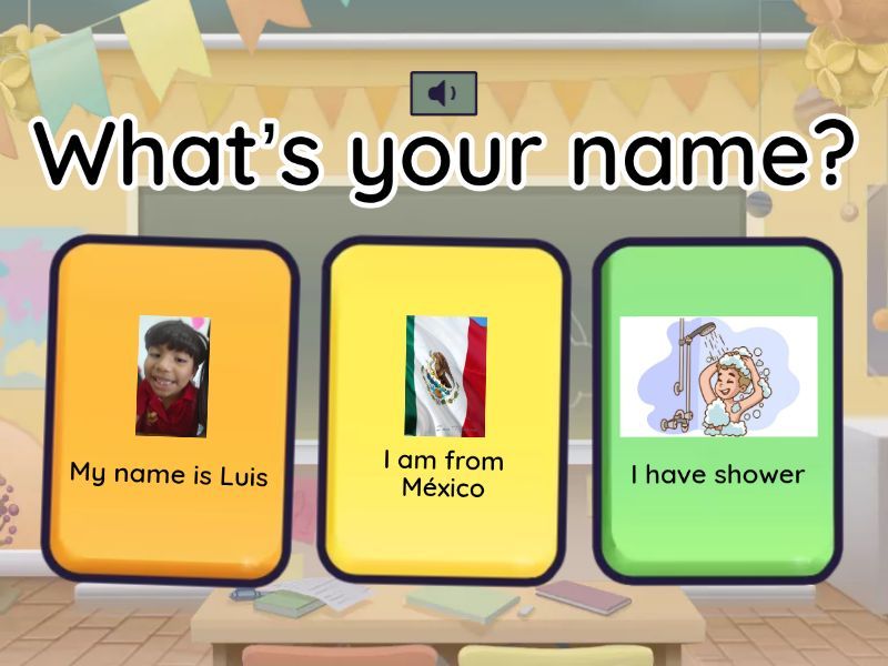 1) What’s your name? a) My name is Luis b) I am from México c) I have shower 2) How old are you? a) Go to school b) I’m 7 years old. c) Home 3) Where are you from? a) Red b) I’m in 2nd (second) grade c) I am from México 4) Where do you live? a) I live in Juchitán b) get dressed c) I go by Mototaxi 5) Where do you go to school? a) Comb hair b) I go to Maria Montessori school c) Do Homework 6) How do you come to class? a) I go by Mototaxi b) My name is Luis c) I’m 7 years old 7) What grade are you in? a) Eat Lunch b) Brush teenth c) I’m in 2nd (second) grade.