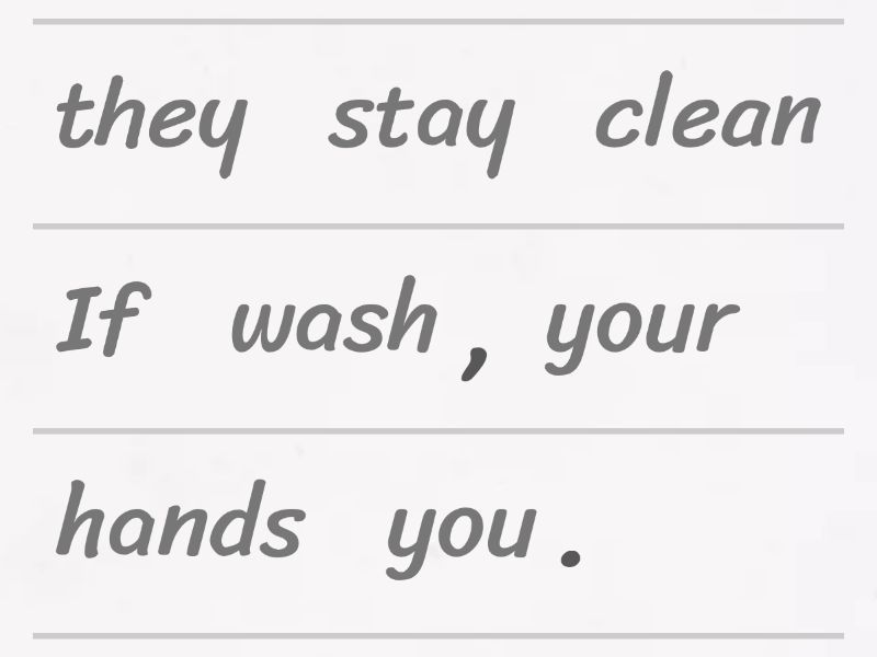 If you wash your hands, they stay clean., If you don’t brush your teeth, they get dirty., If your eyes are dry, you blink more., If you cut your finger, it bleeds., If your back hurts, you sit carefully., If you run a lot, your legs get tired., If you don’t sleep well, your eyes look tired., If you eat too fast, your stomach hurts., If your nose is blocked, you breathe through your mouth., If your ears are cold, you wear a hat., If you wash your face, it feels fresh., If you touch something hot, your hand hurts., If you stand too long, your feet get sore., If you don’t drink water, your skin gets dry., If you smile, your cheeks move., If you don’t warm up, your muscles feel tight., If you hear a loud sound, your ears ring., If you read a lot, your eyes get tired., If your neck is stiff, you turn slowly., If you scratch your arm, it turns red., You feel nervous if your heart beats fast., They get blocked if you don’t clean your ears., It looks oily if your hair is dirty., They crack if your lips are dry., You walk slowly if your knees hurt., You rub them if your hands are cold., You touch them if your eyes are itchy., You sweat if your face is hot., It burns if you don’t protect your skin., You drink water if your mouth is dry.,