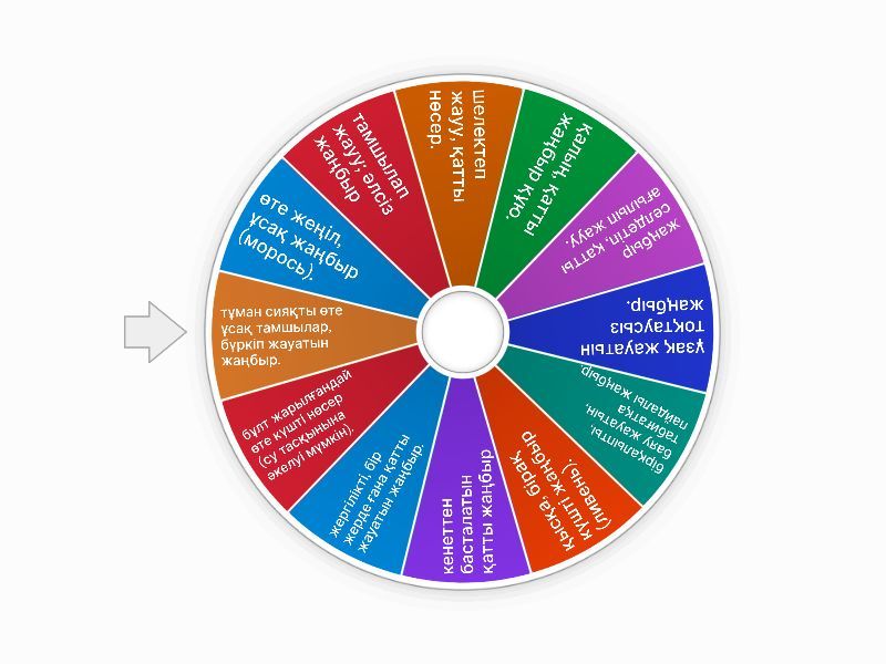 1) өте жеңіл, ұсақ жаңбыр (морось). 2) тамшылап жауу; әлсіз жаңбыр 3) шелектеп жауу, қатты нөсер. 4) қалың, қатты жаңбыр құю. 5) жаңбыр селдетіп, қатты ағылып жауу. 6) ұзақ жауатын тоқтаусыз жаңбыр. 7) бірқалыпты, баяу жауатын, табиғатқа пайдалы жаңбыр. 8) қысқа, бірақ күшті жаңбыр (ливень). 9) кенеттен басталатын қатты жаңбыр 10) жергілікті, бір жерде ғана қатты жауатын жаңбыр. 11) бұлт жарылғандай өте күшті нөсер (су тасқынына әкелуі мүмкін). 12) тұман сияқты өте ұсақ тамшылар, бүркіп жауатын жаңбыр.