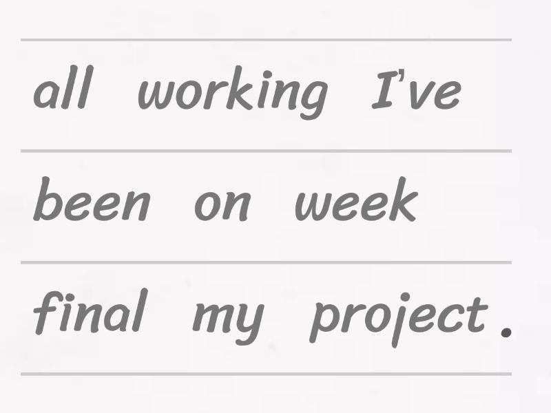 I’ve been working on my final project all week.​, She’s not been searching for new opportunities recently.​, They have been practicing because the challenge is difficult., Have you been feeling stressed with all the chores lately?, We’ve been trying to complete this process since Monday.​,