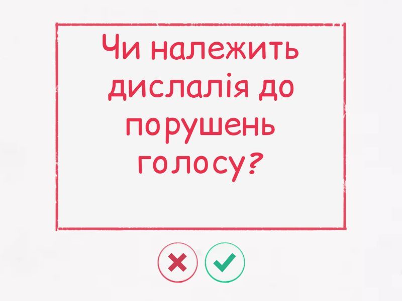 Чи є язик головним органом артикуляції? - Так, Чи формується мовлення повністю до 2 років? - Ні, Чи потрібне правильне дихання для чіткої вимови звуків? - Так, Чи є звук [р] одним із найскладніших для вимови? - Так, Чи належить дислалія до порушень голосу? - Ні, Чи можна виправити звуковимову лише читанням книжок? - Ні, Чи допомагають артикуляційні вправи покращити вимову? - Так, Чи може неправильний прикус впливати на вимову звуків? - Так, Чи достатньо 1 заняття на тиждень для стійкого розвитку мовлення? - Ні, Чи є розвиток словника важливою частиною логопедичної роботи? - Так,