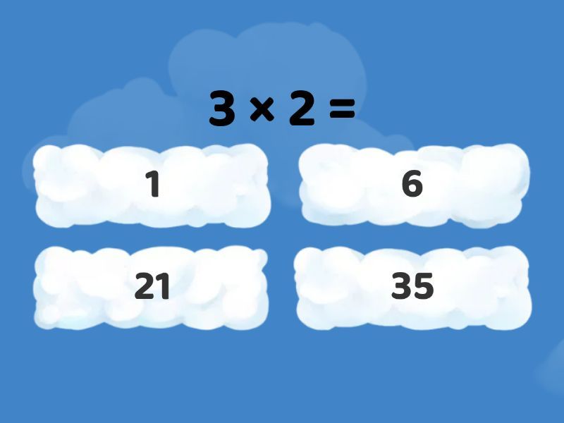 1) 3 × 2 = a) 1 b) 6 c) 21 d) 35 2) 5 × 9 = a) 28 b) 45 c) 53 d) 69 3) 4 × 12 = a) 30 b) 40 c) 48 d) 62 4) 8 × 11 = a) 84 b) 88 c) 91 d) 116 5) 2 × 6 = a) 9 b) 12 c) 15 d) 49