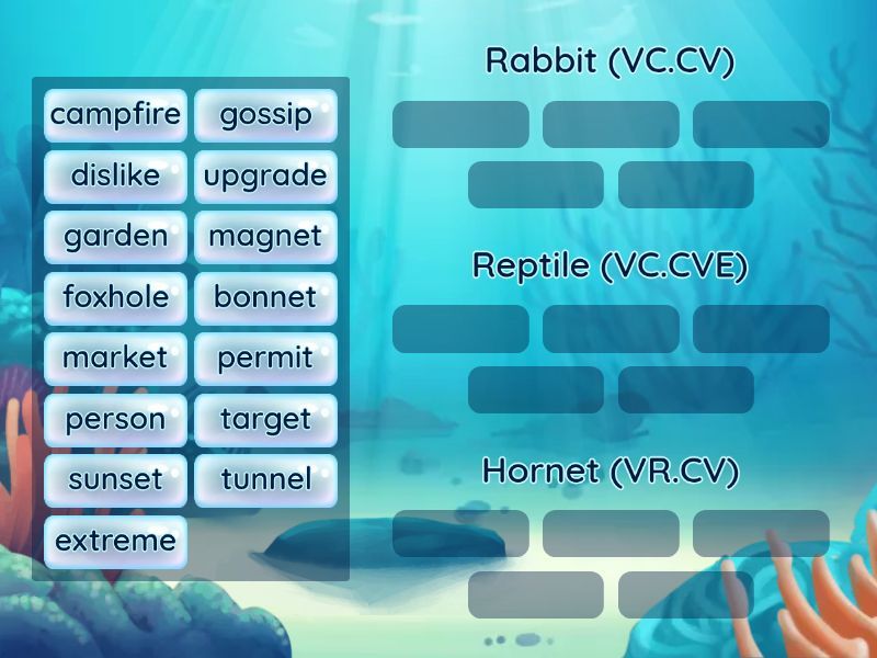 VCCV Syllable Division - Rabbit, Reptile, Hornet