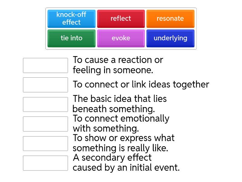 backdrop - The scenery or background behind an event or situation., underlying - The basic idea that lies beneath something., echo - To repeat or imitate an idea or feeling., mirror - To imitate or represent something very closely., knock-off effect - A secondary effect caused by an initial event., resonate - To connect emotionally with something., evoke - To cause a reaction or feeling in someone., reflect - To show or express what something is really like., tie into - To connect or link ideas together, tap into - To use an existing resource or emotion effectively, spring from - To originate or develop from something,