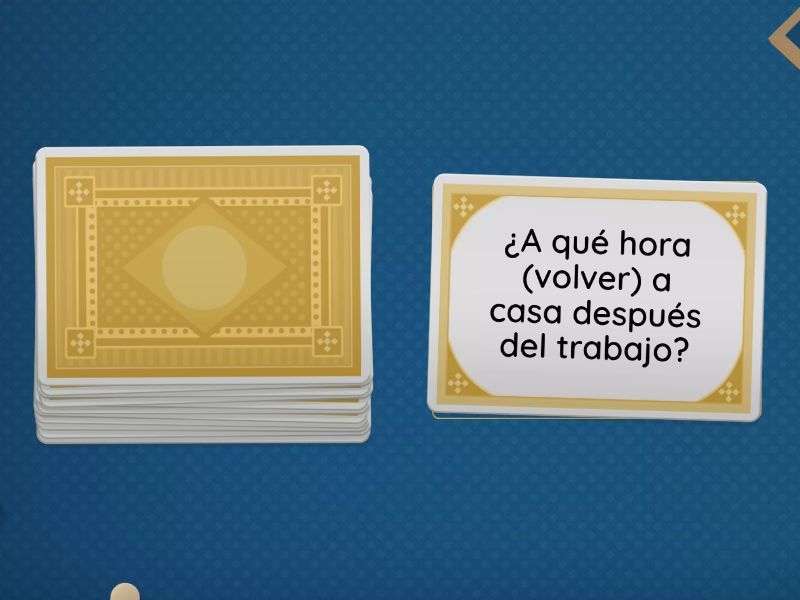 ¿A qué hora (empezar) tu día normalmente?, ¿Dónde (soler) pasar tus vacaciones?, ¿(Pedir) comida a domicilio a menudo?, ¿Qué tienda (preferir) cuando compras ropa?, ¿A quién (querer) ver este fin de semana?, ¿Cuánto tiempo (dormir) normalmente?, ¿(Corregir) a tus amigos cuando cometen errores?, ¿(Jugar) con tu mascota cuando llegas a casa?, ¿Con qué frecuencia (perder) tus llaves o tu móvil?, ¿A qué hora (volver) a casa después del trabajo?, ¿Con quién (querer) pasar tus próximas vacaciones?, ¿Qué mueble (mover) más a menudo en tu casa?.