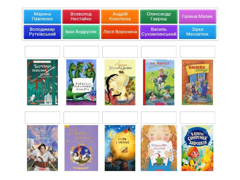 Галина Малик, Всеволод Нестайко, Василь Сухомлинський, Марина Павленко, Володимир Рутківський, Іван Андрусяк, Андрій Кокотюха, Леся Воронина, Олександр Гаврош, Зірка Мензатюк,