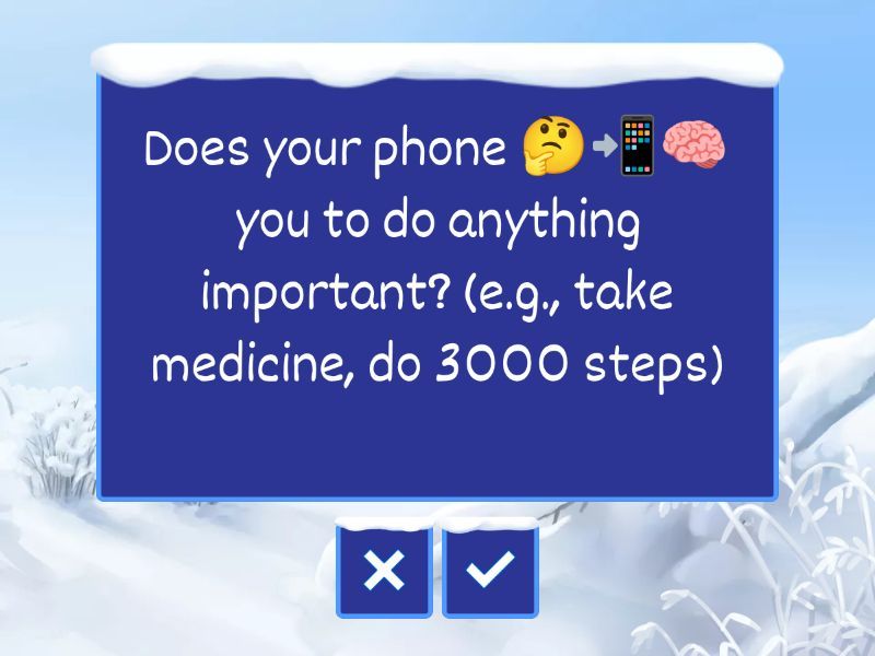 Have you ever failed to 👁️🗨️💡 an old friend because they had changed so much? - Have you ever failed to recognize an old friend because they had changed so much?, What present(s) do you 📅😀 to get for New Year? - What present(s) do you expect to get for New Year?, What is something you often 🤔💭 about the future? ( jobs, technology, your own life) - What is something you often wonder about the future? ( jobs, technology, your own life), Have you ever 🧠❌ a close friend's or family member's birthday? What did you do? - Have you ever forgotten a close friend's or family member's birthday? What did you do?, What was the last thing that made you 😱 🕷? - What was the last thing that made you scream?, If you could make one thing 👻➡️🚫 forever, what would it be? - If you could make one thing disappear forever, what would it be?, What is the best thing you 🧠✅ from your childhood? - What is the best thing you remember from your childhood?, If a plate of any food could🎩🐇✨ in front of you right now, what would it be? - If a plate of any food could appear in front of you right now, what would it be?, Does your phone 🤔📲🧠 you to do anything important? (e.g., take medicine, do 3000 steps) - Does your phone remind you to do anything important? (e.g., take medicine, do 3000 steps),