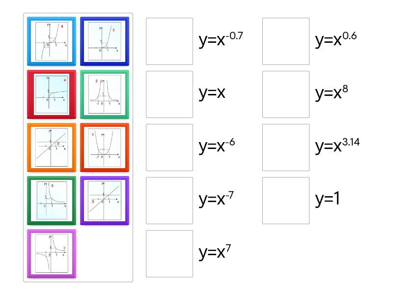 y=x8, y=x-6, y=x3.14, y=x0.6, y=x-0.7, y=x7, y=x-7, y=1, y=x,