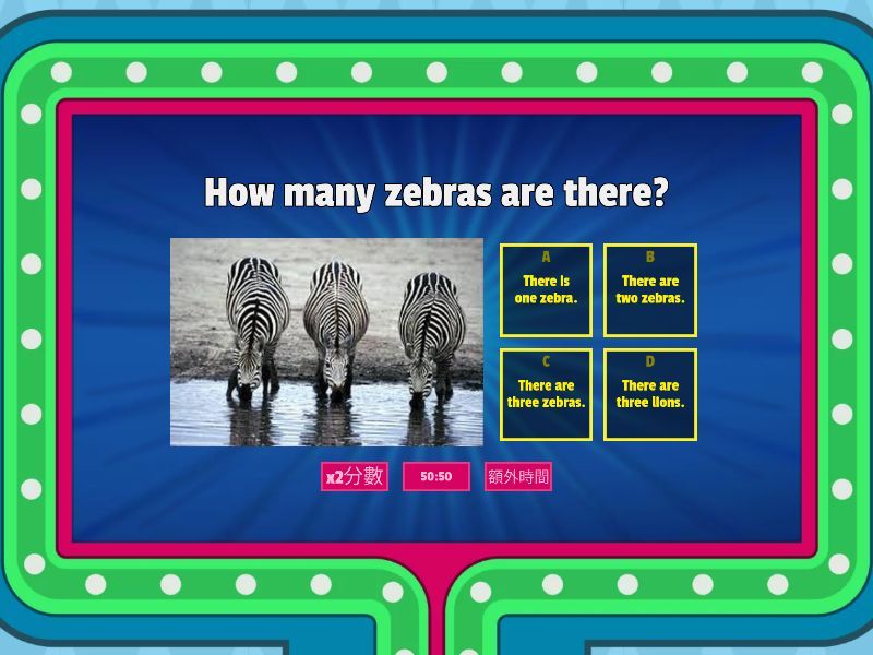 1) How many zebras are there? a) There is one zebra. b) There are two zebras. c) There are three zebras. d) There are three lions. 2) How many elephants are there? a) There is one elephants. b) I like elephants. c) I don't like elephants. d) There are five elephants. 3) How many monkeys are there? a) No monkeys. b) There are seven monkeys. c) There is one monkey. d) He doesn't like monkeys. 4) How many koalas are there? a) There are three koalas. b) There are five koalas. c) There is one koala. d) There are three monkeys. 5) How many horses are there? a) I like horses. b) I don't like horses. c) There is one horse. d) There are two horses. 6) Do you like tigers? a) Yes, I do. b) Yes, she does. c) Yes, I does. d) No, she doesn't. 7) Does he like zebras? a) Yes, he does. b) No, he does. c) No, he doesn't. He likes monkeys. d) No, I don't. I like monkeys. 8) Does she like elephants? a) Yes, she does. b) No, she doesn't. She likes turtles. c) Yes, I do. d) No, I don't. 9) Does Amy like horses? a) Yes, she does. b) No, she does. c) No, she doesn't. d) I like koalas. 10) Does he like monkeys? a) No, I don't. b) No, he does. c) No, he doesn't. He likes monkeys. d) No, he doesn't. He likes zebras.