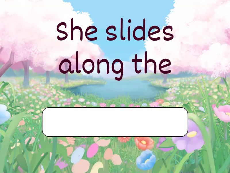 Shelley's home is a , She slides along the, When Shelley got tired she had a, For how many hours did Shelley sleep?, Shelley _ _ _ _ _ she wasn't little anymore, Write a sentence how Shelley looks in her dream.