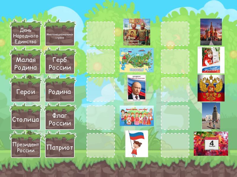 Родина, Столица, Многонациональная страна, День Народного Единства, Герои, Флаг России, Герб России, Малая Родина, Патриот, Президент России,