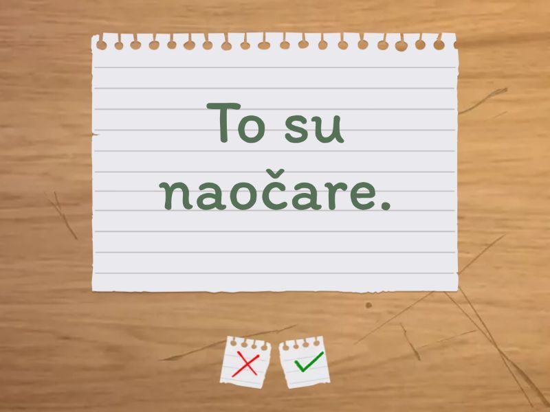 👨👩👧 Porodica i ljudi - Family and people, Imam tetku. - I have got an aunt., Nema brata. - He hasn’t got a brother., Imaju li rođaka? - Have they got a relative?, Ovo je ćerka. - This is a daughter., To je otac. - That is the father., Nema dedu. - He hasn’t got a grandfather., Imamo baku. - We have got a grandmother., Da li ima muža? - Has she got a husband?, Ovo su roditelji. - These are the parents., To je sestra. - That is the sister., Imate li sina? - Have you got a son?, Ovo je stric. - This is the uncle., To je žena. - That is the woman., Postoji li prijatelj ovde? - Is there a friend here?, Nema devojku. - He hasn’t got a girlfriend., Imamo decu. - We have got children., Ovo je tata. - This is dad., To je mama. - That is mom., Nema dedu kod kuće. - He hasn’t got a grandfather at home., Ima li baku tamo? - Has he got a grandmother there?, 🌍 Zemlje i nacionalnosti - 🌍 Countries and nationalities, On je Amerikanac. - He is American., Nema brazilski pasoš. - He hasn’t got a Brazilian passport., Jesmo li Britanci? - Are we British?, Ovo je Kina. - This is China., To je Francuska. - That is France., Nisu Nemci. - They aren’t German., Ona je Italijanka. - She is Italian., Ovo je Japan. - This is Japan., To je Poljska. - That is Poland., Nema špansku zastavu. - He hasn’t got a Spanish flag., Da li su iz Ujedinjenog Kraljevstva? - Are they from the United Kingdom?, Postoje li Amerikanci ovde? - Are there Americans here?, Ovo su Turci. - These are Turks., Nema tursku školu. - He hasn’t got a Turkish school., Ima francusku knjigu. - He has got a French book., 👁️🗨️ Izgled (oči, kosa, telo) - Appearance eyes hair body, Ima velike oči. - He has got big eyes., Nema plave oči. - He hasn’t got blue eyes., Imaju li smeđe oči? - Have they got brown eyes?, Ovo su zelene oči. - These are green eyes., To su tamne oči. - Those are dark eyes., Ima plavu kosu. - He has got blond hair., Nema crnu kosu. - He hasn’t got black hair., Imaju li dugu kosu? - Have they got long hair?, Ovo je siva kosa. - This is gray hair., To je kratka kosa. - That is short hair., Ima crvenu kosu. - He has got red hair., Ovo su mladi učenici. - These are young students., On je visok. - He is tall., Ona nije mala. - She is not short., Jesi li star? - Are you old?, Ovo je vitka devojka. - This is a slim girl., To je star čovek. - That is an old man., 💬 Osobine ličnosti - 💬 Personality traits, On je hrabar. - He is brave., Nije pametna. - She is not smart., Da li si siguran? - Are you sure?, Ovo je prijateljski dečak. - This is a friendly boy., To je smešan nastavnik. - That is a funny teacher., Ima ljubazne učenike. - He has got kind students., Nisu nervozni. - They are not nervous., Da li si stidljiv? - Are you shy?, On je opušten. - He is relaxed., Ovo su tihi učenici. - These are quiet students., 👕 Odeća i obuća - 👕 Clothes and shoes, Ovo su čizme. - These are boots., Nema haljinu. - She hasn’t got a dress., Ima li kapu? - Has he got a cap?, Ovo je jakna. - This is a jacket., To su farmerke. - Those are jeans., Ima košulju. - He has got a shirt., Nema patike. - He hasn’t got sneakers., Ima li šorts? - Has he got shorts?, Ovo je suknja. - This is a skirt., To su naočare. - Those are glasses., Ima džemper. - He has got a sweater., Nema duksericu. - He hasn’t got a hoodie., Ima li majicu? - Has he got a T-shirt?, Ovo je trenerka. - This is a tracksuit., To su pantalone. - Those are trousers/pants., Ima nove cipele. - He has got new shoes., 🏠 Ostale reči - 🏠 Other words, Nema kuću. - He hasn’t got a house., Ima li dom? - Has he got a home?, Ovo je rođendan. - This is a birthday., To je zabava. - That is a party., Imaju prijatelje. - They have got friends., Nema omiljenu knjigu. - She hasn’t got a favorite book., Ovo su ljudi. - These are people., To je osoba. - That is a person., Koliko ima godina? - How old is he?, Ovo su deca. - These are children., To je baka. - That is the grandmother., Nema dedu. - He hasn’t got a grandfather., Ovo je mama. - This is mom., To je tata. - That is dad., Ima li ime? - Has he got a name?, Ovo je lepa kuća. - This is a beautiful house.,