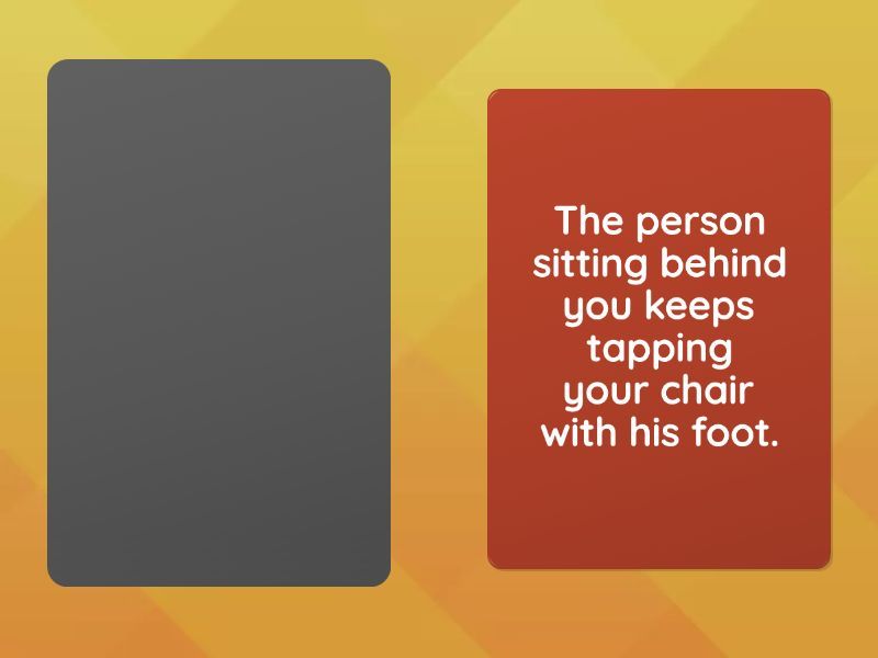 You spill your soda on your computer., You were caught cheating in a Maths test., You didn't do your homework. Your teacher was upset with you. , The person sitting behind you keeps tapping your chair with his foot., A bully threatened to beat you up after school. , The teacher is giving directions, but your friend sitting next to you keeps talking. You can't hear the directions. What should you do?.