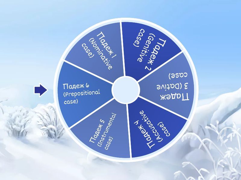 1) Падеж 1 (Nominative case) 2) Падеж 2 (Genitive case) 3) Падеж 3 (Dative case) 4) Падеж 4 (Accusative case) 5) Падеж 5 (Instrumental case) 6) Падеж 6 (Prepositional case)
