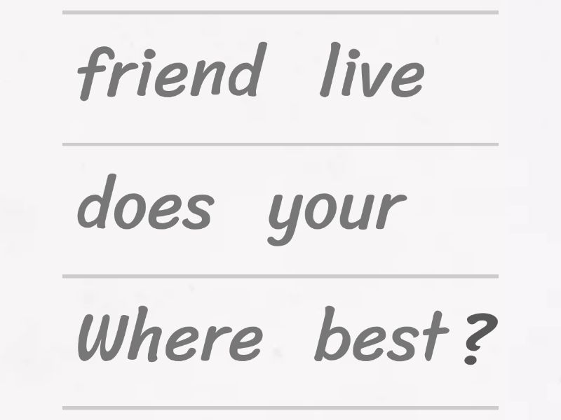 Where does your best friend live?, What do you eat for breakfast everyday?, When does your son go to the supermarket?, Why do you look tired today?, How do you make pizza?, What do you eat for lunch today?, What time does the English class finish?, Why do babies cry a lot?, How much money do you have now?, When does your best friend visit you?,