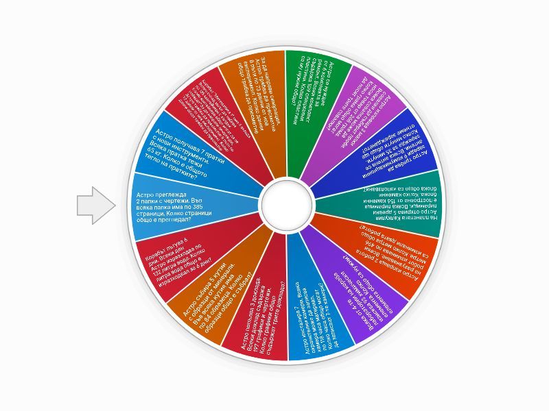 1) Астро получава 7 пратки с нови инструменти. Всяка пратка тежи 65 кг. Колко е общото тегло на пратките? 2) Корабът "Математика-1" има 4 склада. Всеки склад може да побере по 185 контейнера с въздух. Колко контейнера общо могат да се поберат?За да направи симулация, Астро трябва да пресметне 8 пъти по 73 данни от нов експеримент. Колко данни общо трябва да пресметне 3) За да направи симулация, Астро трябва да пресметне 8 пъти по 73 данни от нов експеримент. Колко данни общо трябва да пресметне 4) Астро се нуждае от 6 комплекта за ремонт. Всеки комплект съдържа 109 специални пластини. Колко пластини са му нужни общо? 5) Астро изпраща 3 малки совалки да съберат проби. Всяка совалка може да носи товар от 268 грама. Колко грама общо могат да носят трите совалки? 6) Астро трябва да зареди 9 комуникационни антени. Всяка антена се зарежда за 35 минути. Колко минути общо ще отнеме зареждането? 7) На планетата Калкулия Астро открива 5 древни пирамиди. Всяка пирамида е построена от 156 каменни блока. Колко каменни блока общо са използвани? 8) Астро изпраща 2 робота на разузнаване. Всеки робот изминава по 496 метра. Колко метра общо са изминали двата робота? 9) Всяка от 4-те лаборатории на кораба изисква 93 химически елемента. Колко елемента общо са нужни? 10) Астро инсталира 7 охранителни камери. Всяка камера може да записва по 118 часа материал. Колко часа общо могат да записват 7-те камери? 11) Астро попълва 3 доклада. Всеки доклад съдържа 197 графики и чертежи. Колко графики общо съдържат трите доклада? 12) Астро събира 5 кутии с образци от минерали. Във всяка кутия има по 84 образеца. Колко образци общо е събрал? 13) Корабът пътува 6 дни. Всеки ден Астро изразходва по 132 литра вода. Колко литра вода общо е изразходвал за 6 дни? 14) Астро преглежда 2 папки с чертежи. Във всяка папка има по 385 страници. Колко страници общо е прегледал?
