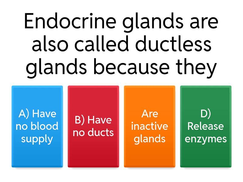 1) Endocrine glands are also called ductless glands because they a) A) Have no blood supply b) B) Have no ducts c) Are inactive glands d) D) Release enzymes 2) The hormone secreted by the thyroid gland is a) insuline b) thyroxine c) adernaline d) growth hormone  3) 3. The pituitary gland is called the master gland because it: a) A) Produces digestive enzymes b) B) Controls all body movements c) C) Controls other endocrine glands d) D) Stores hormones 4) 4. Deficiency of iodine in the body causes which disease? a) Diabetes b) goitre c) dwarfism d) gigantism 5) Excess secretion of growth hormone in childhood leads to: a) Dwarfism b) gigantism c) diabetes d) goitre