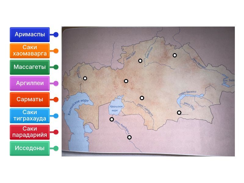 Саки тиграхауда, Саки парадарийя, Саки хаомаварга, Массагеты, Аргилпеи, Аримаспы, Исседоны, Сарматы.