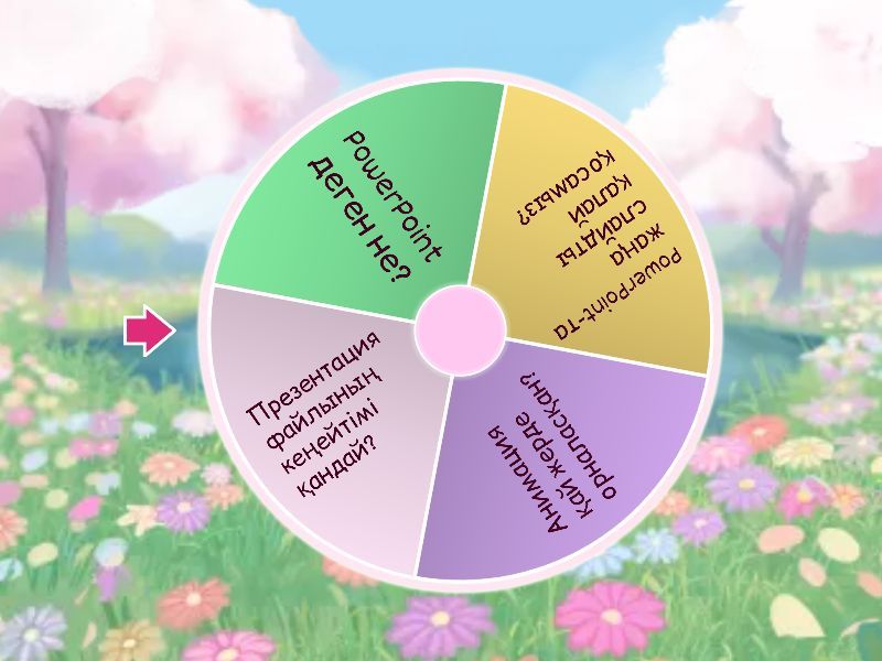 1) PowerPoint деген не? a) Мәтіндік редактор b) Презентация жасау бағдарламасы c) Сурет салу құралы 2) PowerPoint-та жаңа слайдты қалай қосамыз? a) Insert → New Slide b) Home → Copy c) View → Slide Sorter 3) Анимация қай жерде орналасқан? a) Home b) Animations c) Slide Show 4) Презентация файлының кеңейтімі қандай? a) docx b) jpg c) pptx