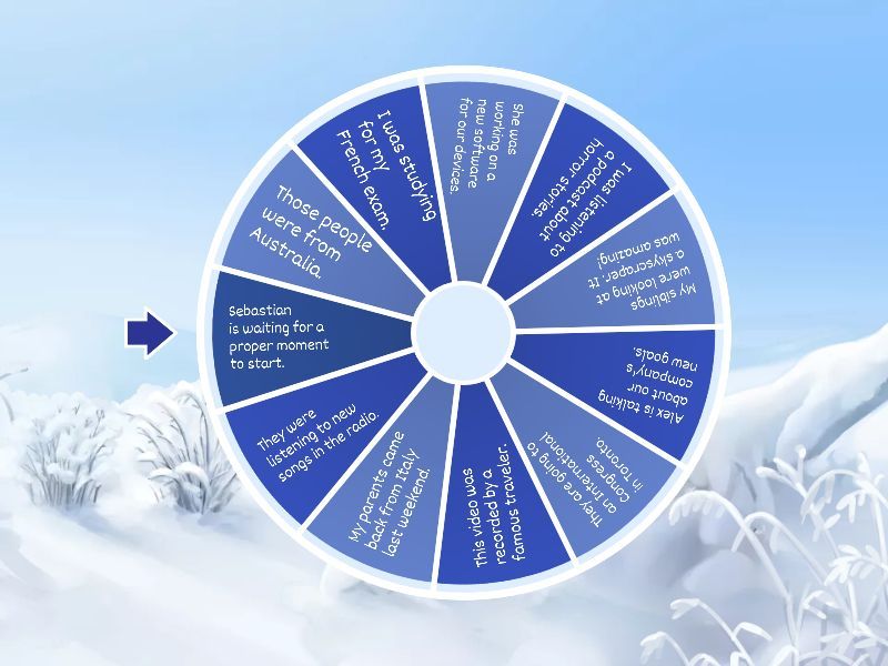1) Those people were from Australia. 2) I was studying for my French exam. 3) She was working on a new software for our devices. 4) I was listening to a podcast about horror stories. 5) My siblings were looking at a skyscraper. It was amazing! 6) Alex is talking about our company's new goals. 7) They are going to an International Congress in Toronto. 8) This video was recorded by a famous traveler. 9) My parents came back from Italy last weekend. 10) They were listening to new songs in the radio. 11) Sebastian is waiting for a proper moment to start.