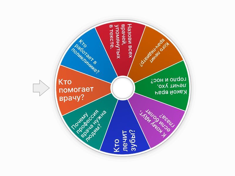 1) Кто работает в поликлинике? 2) Назови всех врачей, упомянутых в тексте. 3) Кого лечит врач-педиатр? 4) Какой врач лечит ухо, горло и нос? 5) К кому идут, если болят глаза? 6) Кто лечит зубы? 7) Почему профессия врача нужна людям? 8) Кто помогает врачу?
