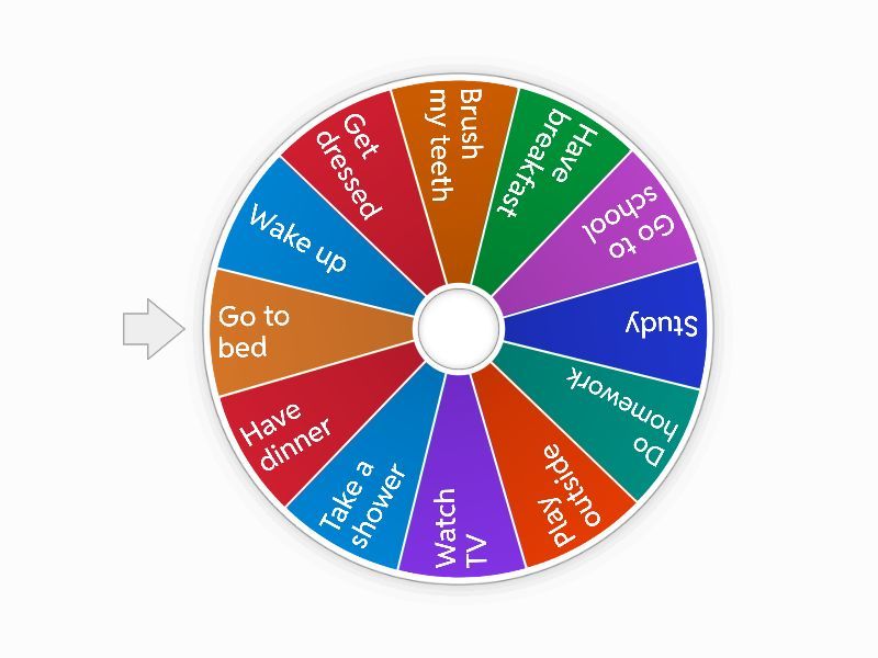 1) Wake up 2) Get dressed 3) Brush my teeth 4) Have breakfast 5) Go to school 6) Study 7) Do homework 8) Play outside 9) Watch TV 10) Take a shower 11) Have dinner 12) Go to bed