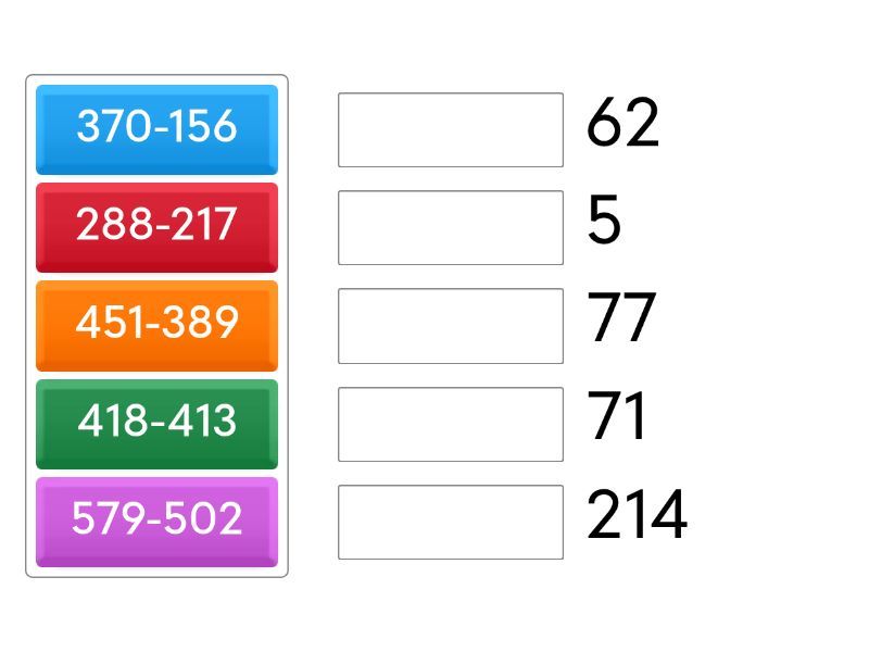 288-217 - 71, 370-156 - 214, 451-389 - 62, 418-413 - 5, 579-502 - 77,