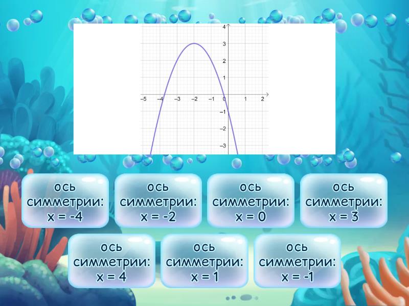 ось симметрии: x = -2, ось симметрии: x = -4, ось симметрии: x = 1, ось симметрии: x = 3, ось симметрии: x = 4, ось симметрии: x = 0, ось симметрии: x = -1,