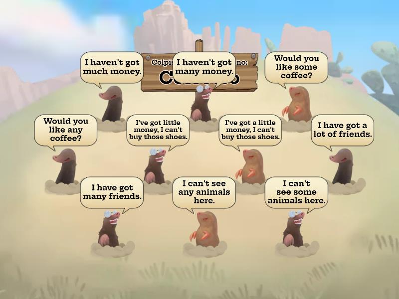 Corretto: I haven't got much money., Would you like some coffee?, I've got little money, I can't buy those shoes., I have got a lot of friends., I can't see any animals here., How much homework do you have to do today?, I've got to tell you a few things., Have you got any sugar?, I don't have many siblings., There is no chocolate cake left!, I have got no sugar., Errato: I haven't got many money., Would you like any coffee?, I've got a little money, I can't buy those shoes., I have got many friends., I can't see some animals here., How many homeworks do you have to do today?, I've got to tell you a little things., Have you got some sugar?, I don't have much siblings., There isn't no chocolate cake left!, I have got none sugar.,