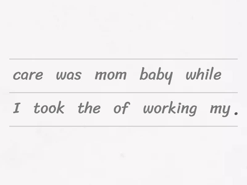 I took care of the baby while my mom was working., I made a mistake and dialled a wrong number., She got in trouble for arriving home late., I bought a present for my friend and she loved it., He fell in love with his dad's new car., I made a mistake while I was driving my new car., Her parents were travelling when she got in trouble with the police., While my dad was working, I bought him a present., I was taking care of my little sister when we started to cry., She was dancing when I fell in love.,