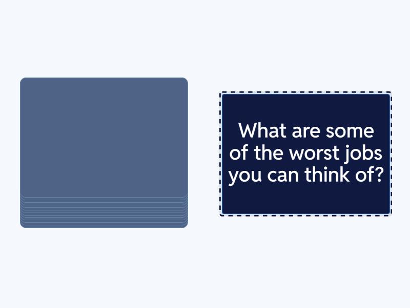 What are some common jobs for men in your country?, What are some common jobs for women in your country?, How difficult is to have your own business?, At what age do people usually retire in your country?, How many days a week do people work in your country?, How many hours a week do people work in your country?, Do people have to work overtime? If so, how often?, Is unemployment a great problem where you live now?, What are the best ways to look for a job?, In your opinion, which jobs are the most prestigious? Why?, What are some of the worst jobs you can think of?, What are some of the best jobs you can think of?, What negative things can be caused by working too long?, Do you know what a workaholic is?.