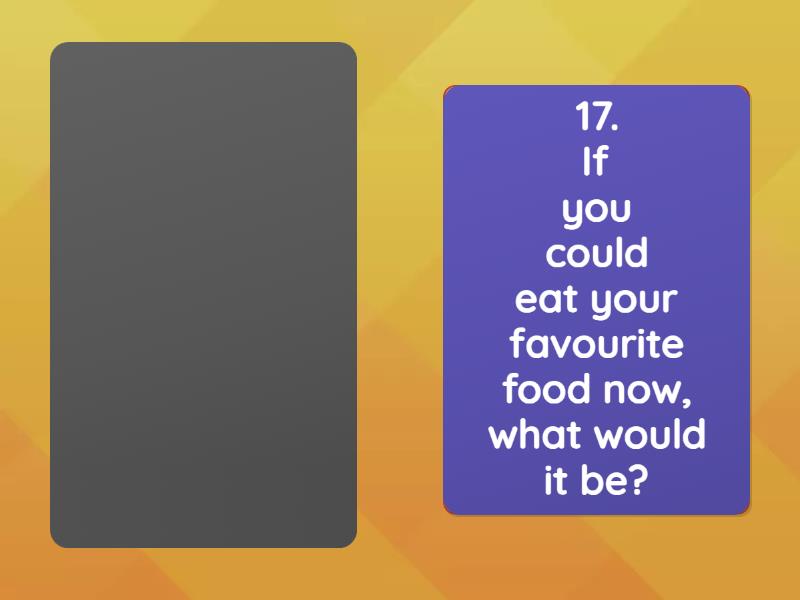 If you could go anywhere in the world, where would you go?, 2. If I gave you $10,000, what would you spend it on?, 3. If you could watch your favourite movie now, what would it be?, 4. If you could talk to anyone in the world, who would it be?, 5. If you could wish one thing to come true this year, what would it be?, 6. If you could live in any period of history, when would it be?, 8. If you could be someone else, who would you be?, 11. If you could have any kind of pet, what would you have?, 17. If you could eat your favourite food now, what would it be?, 18. If you could learn any skill, what would it be?.
