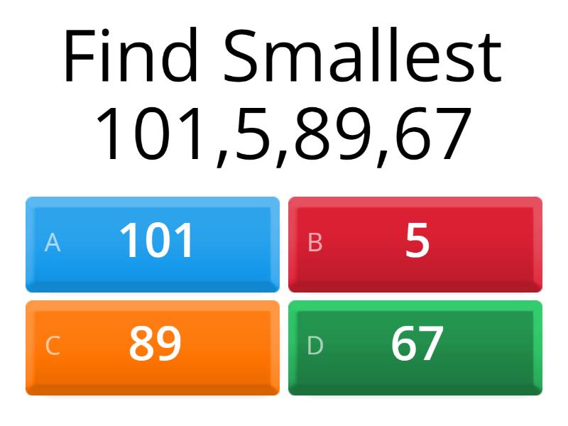 1) Find Smallest 101,5,89,67 a) 101 b) 5 c) 89 d) 67 2) 5+3 a) 8 b) 10 c) 45 d) 6 3) 4*6 a) 22 b) 15 c) 45 d) 24 4) Which transport a) Water b) Air c) Road 5) 5-3 a) 1 b) 3 c) 2 d) 4 6) Peel a) Feel b) Keep c) Seen d) Week 7) 10+4 a) 20 b) 24 c) 14 d) 15 8) 12 ,which is true a) 1 in tens and 2 in ones b) 2 in tens and 1 in ones c) None 9) 4*9 a) 36 b) 30 c) 35 d) 25 10) Find biggest 202,5,221,31 a) 202 b) 221 c) 31 d) 5