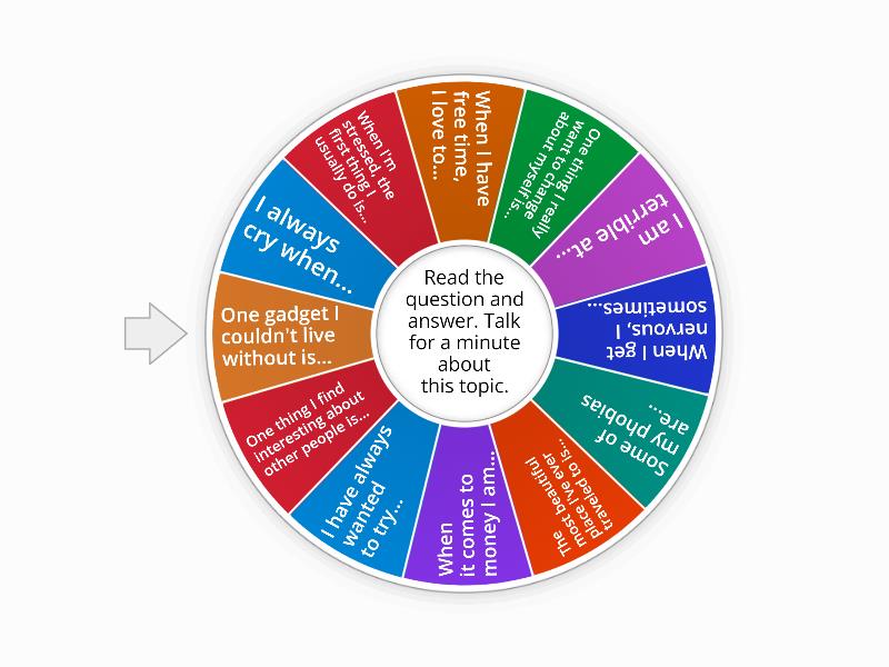 I always cry when..., When I'm stressed, the first thing I usually do is..., When I have free time, I love to..., One thing I really want to change about myself is..., I am terrible at..., When I get nervous, I sometimes..., Some of my phobias are..., The most beautiful place I've ever traveled to is..., When it comes to money I am..., I have always wanted to try..., One thing I find interesting about other people is..., One gadget I couldn't live without is....