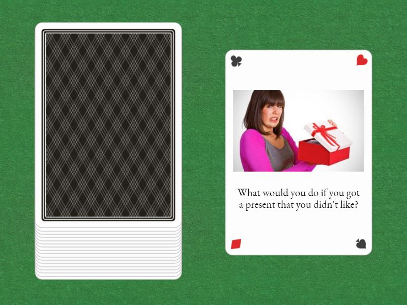 If I found a wallet full of money..., I wouldn't tell my friend if..., If I had a car accident with a parked car, ..., Would you open a love letter addressed to someone else?, If I accidentally broke something and no one saw, I ..., Would you lie at a job interview?, I would jump out of an airplane if..., If I found a great, cheap vacation in a dangerous country, I would go. T or F? Why?, What would you do if you had to talk to a crowd of people?, If I were at a party and I didn't know anyone..., Would you eat something very unusual if you traveled to a different country?, Would you walk through a dark forest at night? In which circumstance?, I would never tell a secret that my friend asked me to keep. T or F? Why?, What would you do if you got a present that you didn't like?, Would you lie for a friend? In which situations?, Would you agree with someone even if they were wrong? Why?, Would you believe in a ghost story that happened to a friend of yours?, Which object would you save first if your house were on fire? .