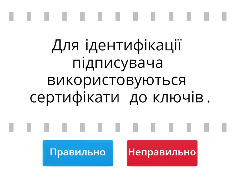 Правильно: Для ідентифікації підписувача використовуються сертифікати до ключів., Статус ЕЦП залежить від того, яким є сертифікат – звичайним чи посиленим., Відповідно до закону, ЕЦП прирівнюється до «живого» підпису фізичної особи або до «мокрої» печатки особи., Неправильно: Сертифікати мають паперову форму та зберігаються на електронному носії., Електронний підпис може бути визнаний недійсним та позбавленим можливості розглядатися як доказ у судових справах, Термін дії електронного підпису 1,5 роки,