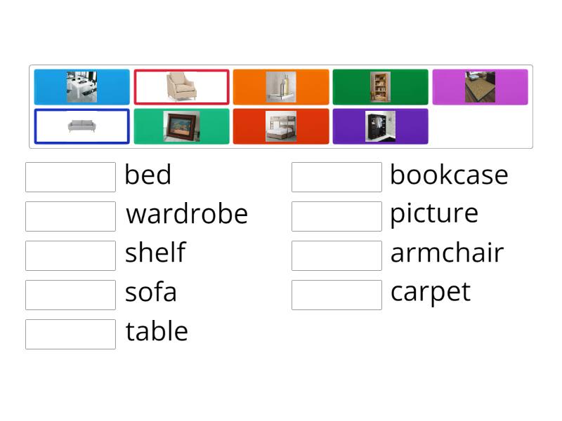 sofa, table, armchair, wardrobe, bookcase, carpet, bed, shelf, picture,