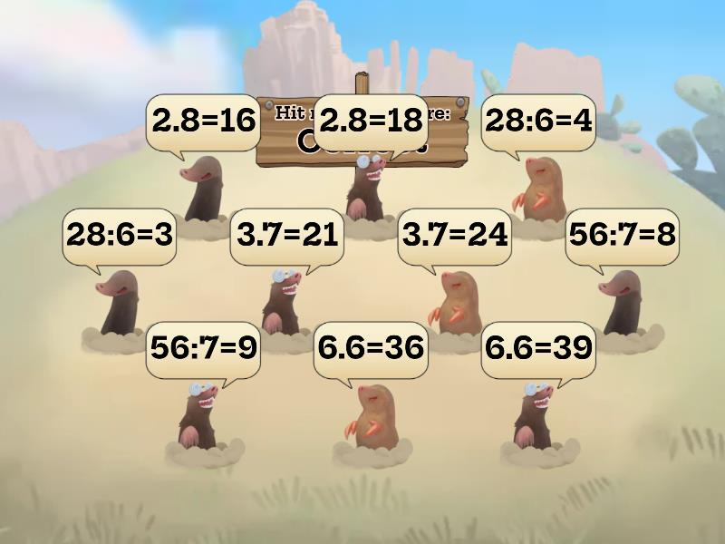 Correct: 2.8=16, 28:6=4, 3.7=21, 56:7=8, 6.6=36, Incorrect: 2.8=18, 28:6=3, 3.7=24, 56:7=9, 6.6=39,