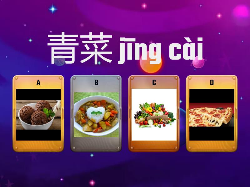 1) 比萨饼 bǐ sà bǐng a) b) c) d) 2) 苹果 píng guǒ a) b) c) d) 3) 巧克力 qiǎo kè lì a) b) c) d) 4) 草莓 cǎo méi a) b) c) d) 5) 热狗 rè gǒu a) b) c) d) 6) 面包 miàn bāo a) b) c) d) 7) 鸡腿 jī tuǐ a) b) c) d) 8) 香蕉 xiāng jiāo a) b) c) d) 9) 西瓜 xī guā a) b) c) d) 10) 咖喱饭 gā lí fàn a) b) c) d) 11) 点心 diǎn xīn a) b) c) d) 12) 叉烧饭 chā shāo fàn a) b) c) d) 13) 汉堡包 hàn bǎo bāo a) b) c) d) 14) 窝夫饼 wō fū bǐng a) b) c) d) 15) 意大利面 yì dà lì miàn a) b) c) d) 16) 寿司 shōu sī a) b) c) d) 17) 肉 ròu a) b) c) d) 18) 青菜 jīng cài a) b) c) d) 19) 鸡蛋 jī dàn a) b) c) d) 20) 沙拉 shā lā a) b) c) d) 21) 冰淇淋 bīng qí lín a) b) c) d) 22) 三明治 sān míng zhì a) b) c) d) 23) 汤 tāng a) b) c) d) 24) 炒米粉 chǎo mǐ fěn a) b) c) d) 25) 粥zhōu a) b) c) d)