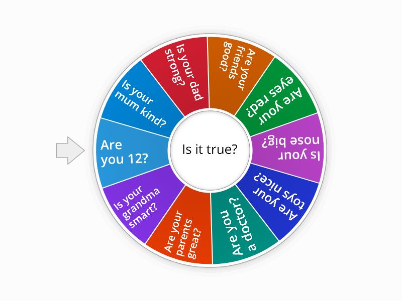 Is your mum kind?, Is your dad strong?, Are your friends good? , Are your eyes red?, Is your nose big?, Are your toys nice?, Are you a doctor? , Are your parents great?, Is your grandma smart?, Are you 12?.
