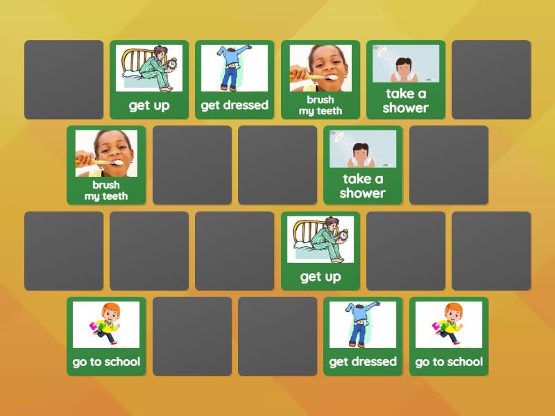 get up, brush my teeth, take a shower, get dressed, go to school, do my homework, go to bed, have breakfast, have a snack, have lunch, have dinner,