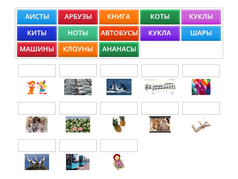КУКЛА, КУКЛЫ, КЛОУНЫ, КНИГА, АНАНАСЫ, КИТЫ, КОТЫ, МАШИНЫ, ШАРЫ, АИСТЫ, АВТОБУСЫ, АРБУЗЫ, НОТЫ,