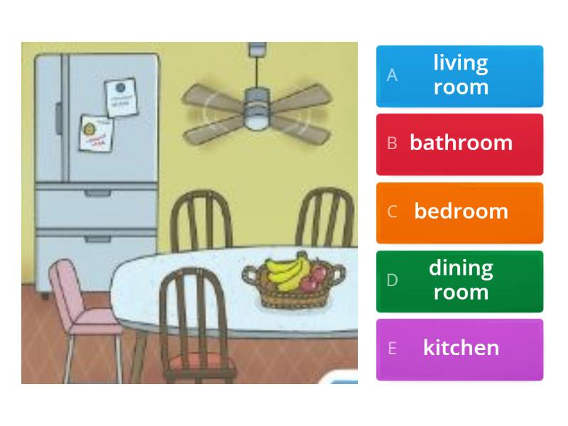1) bathroom a) 客廳 b) 浴室 c) 臥室 d) 飯廳 e) 廚房 2) bedroom a) 客廳 b) 浴室 c) 臥室 d) 飯廳 e) 廚房 3) living room a) 客廳 b) 浴室 c) 臥室 d) 飯廳 e) 廚房 4) dining room a) 客廳 b) 浴室 c) 臥室 d) 飯廳 e) 廚房