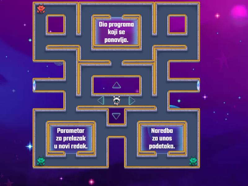 1) Što je računalni program? a) Pisanje teksta u programskom jeziku. b) Skup naredbi koji govori što i kako treba napraviti. c) Postupak pisanja programa. 2) Ulazne vrijednosti su: a) podatci koje unosimo pomoću uređaja ili se zadaju unutar programa. b) određene svojim nazivom i vrijednošću. c) "naredbe u naredbi". 3) Što je varijabla? a) Rezultat obrade ulaznih podataka. b) Funkcija za pretvorbu ulaznog podatka u broj. c) Simbolički naziv kojemu se može pridružiti neka vrijednost. 4) Petlju za koju znamo broj ponavljanja nazivamo: a) petlja s logičkim uvjetom b) petlja u petlji c) petlja bez logičkog uvjeta 5) Što je petlja? a) Naredba za unos podataka. b) Dio programa koji se ponavlja. c) Parametar za prelazak u novi redak.