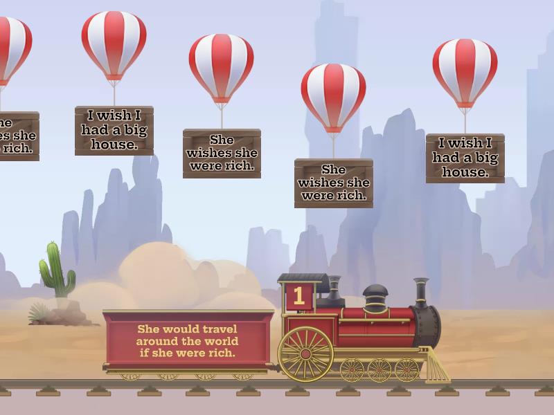 I wish I had a big house. - If I won the lottery, I would buy a big house., I wish I were rich. - I would travel around the world if I were rich., She wishes she were rich. - She would travel around the world if she were rich., I wish I had more time. - If I had more time I would do volunteer work., I wish I had money. - I would take care of stray dogs If I had money, I wish I could speak german. - If I could speak other language, I would choose german.,